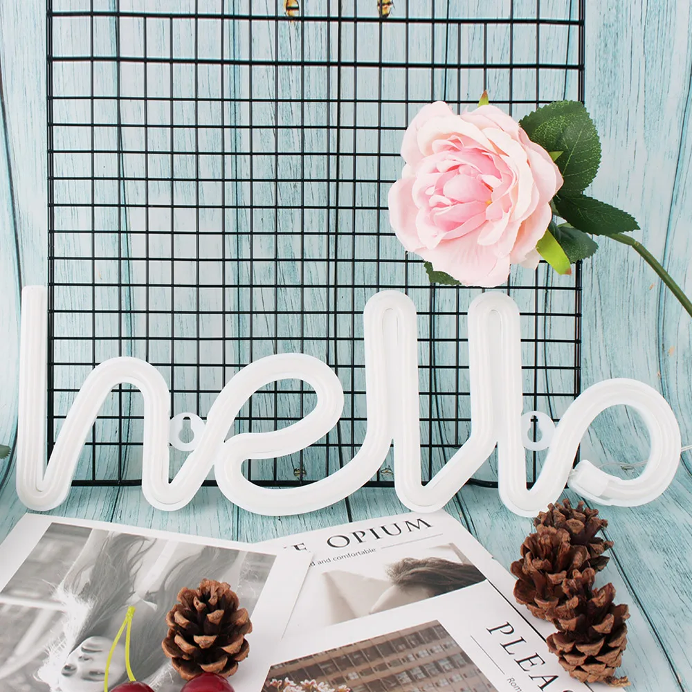 Неоновая светодиодная вывеска с надписью Hello, неоновые украшения ...