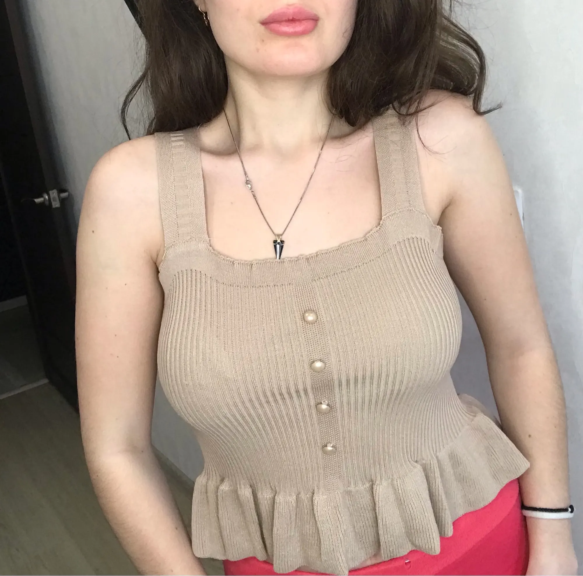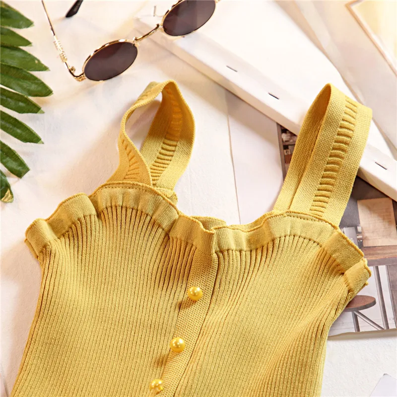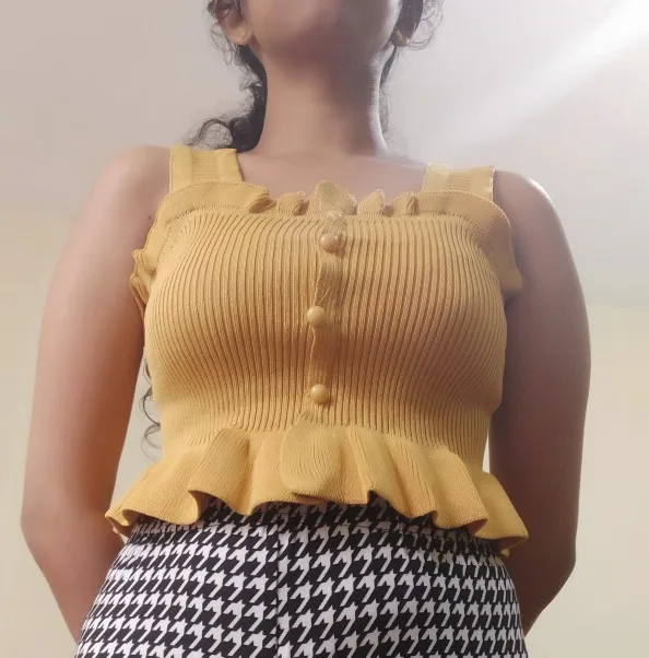 Кроп-топ женский летний на пуговицах, с воланом, 2020