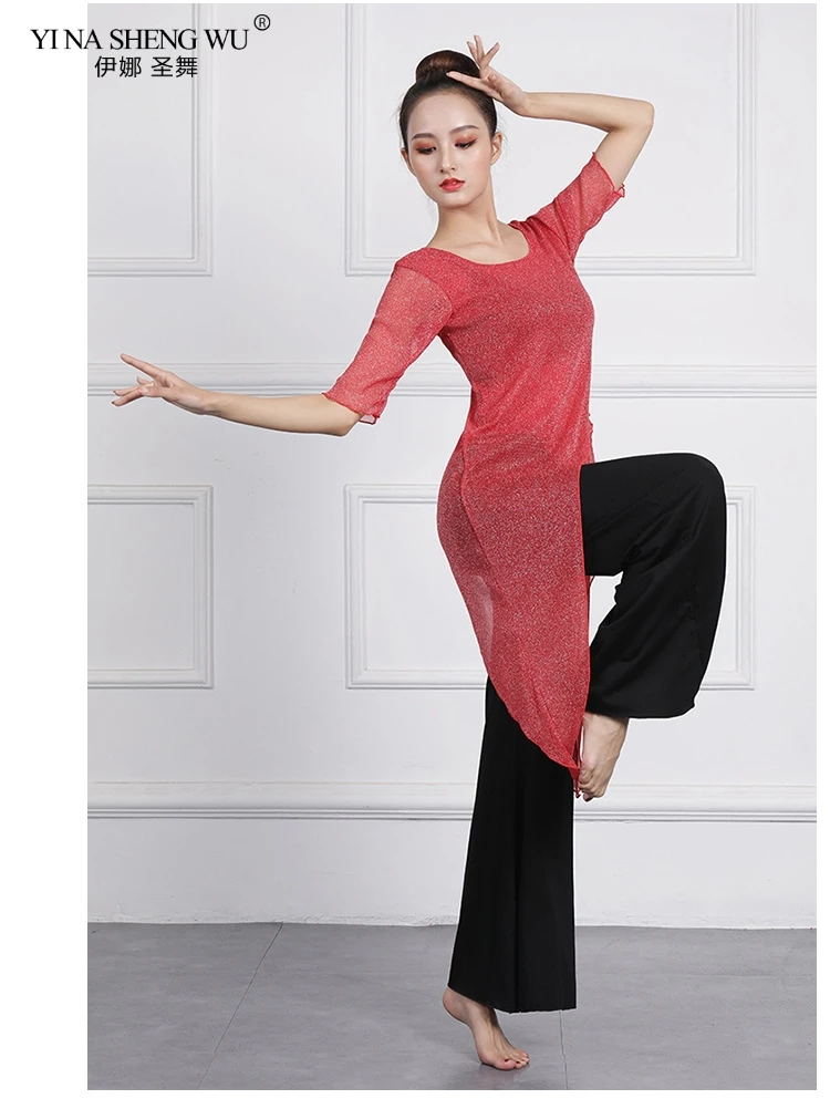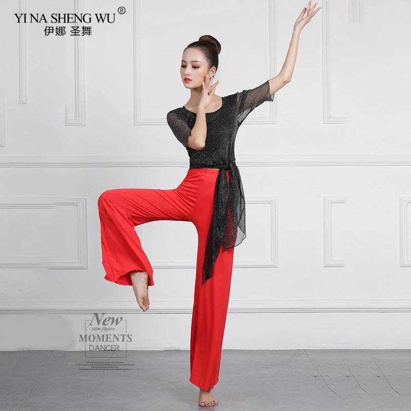 Женский костюм для танца живота, топ с коротким рукавом и штаны для занятий восточными танцами, тренировочный костюм для начинающих, 2 стиля