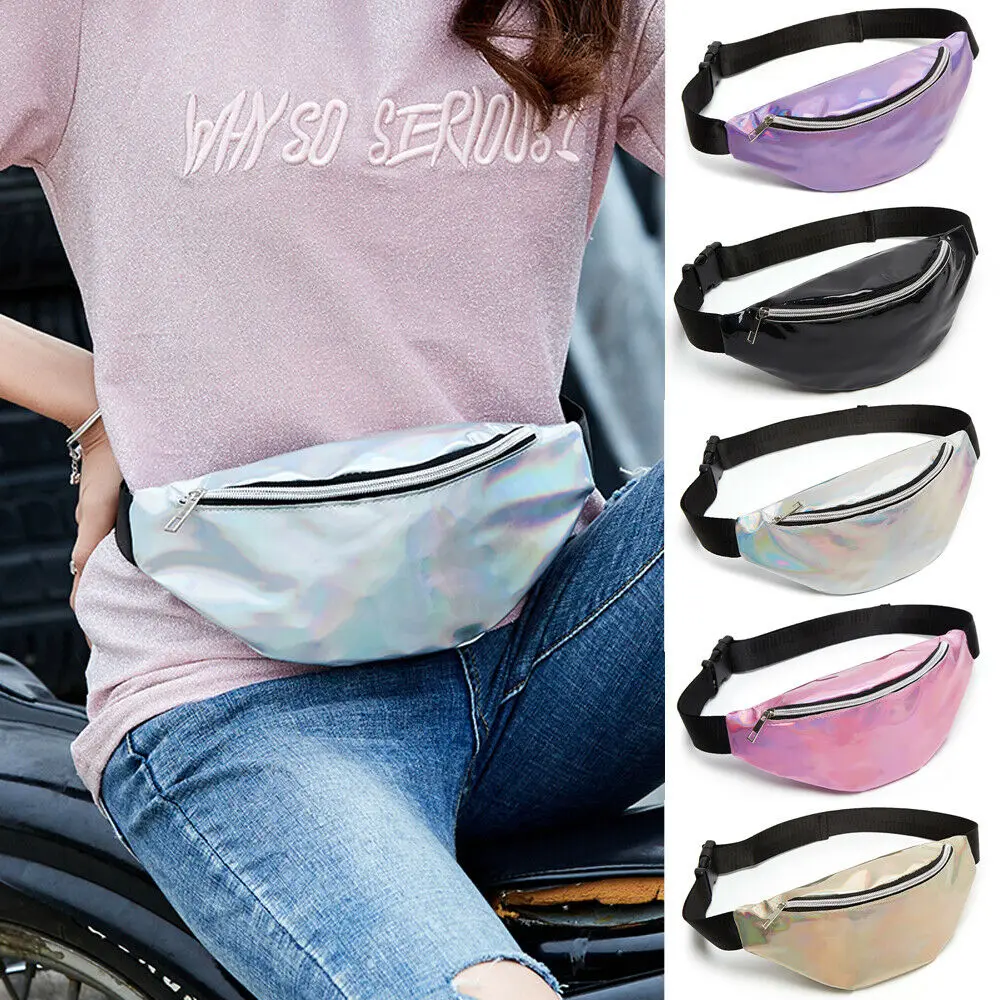 Модная блестящая поясная сумка унисекс из полиуретана, модная забавная поясная сумочка унисекс с лазерным узором для мужчин и женщин, дорожный поясной кошелек