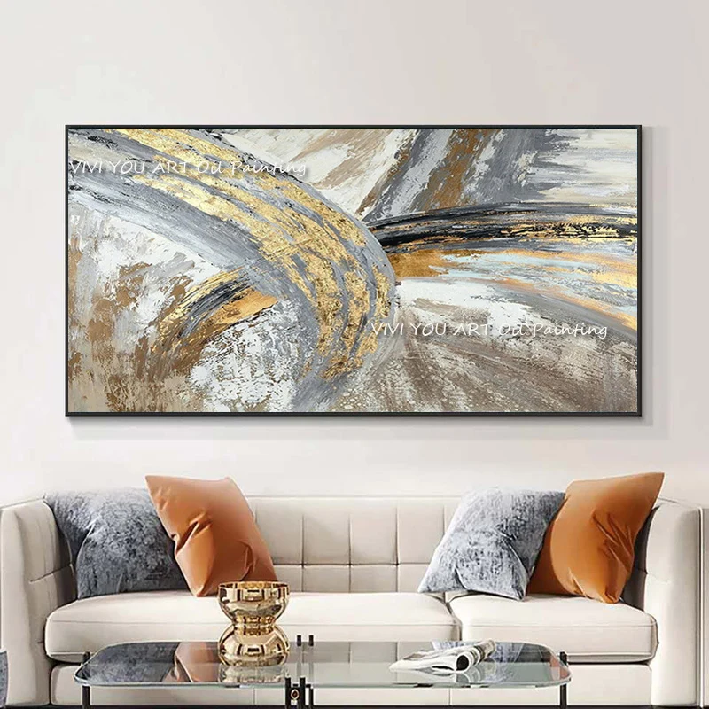 Абстрактная Золотая простая картина маслом ручной работы, красивые холсты, Настенная картина для гостиной, коридора, Современный домашний декор