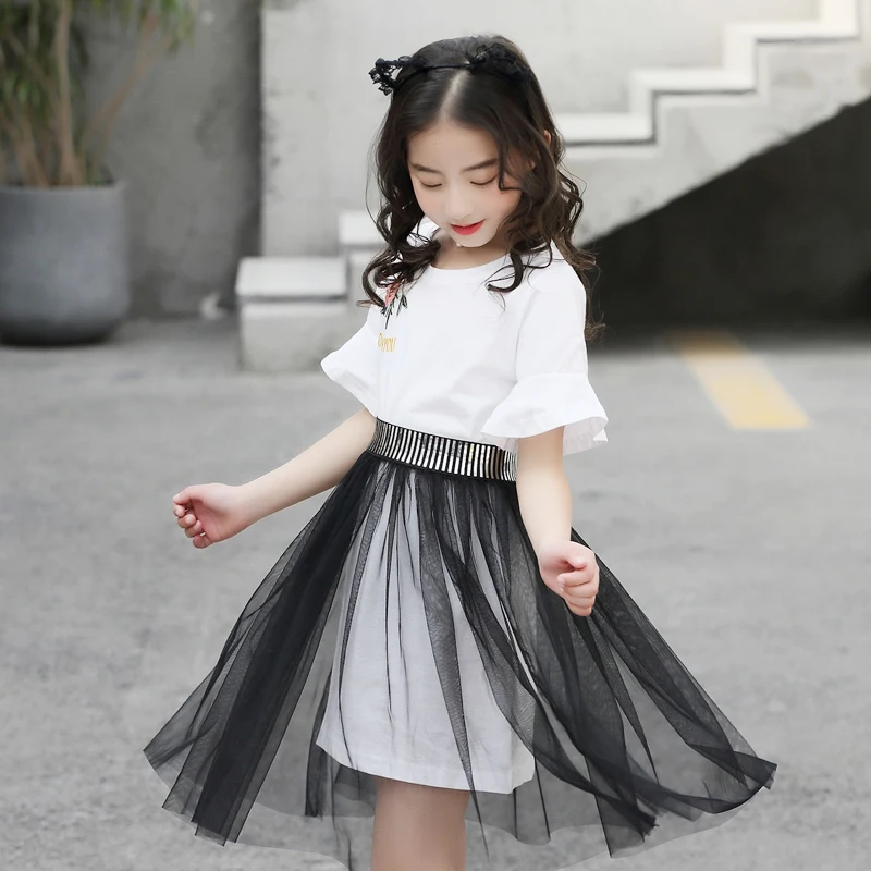 Комплект одежды для девочек Лето 2020 Детская футболка с короткими рукавами и юбка комплект одежды комплекты из хлопка, с цветочным принтом, футболки с длинными рукавами для мальчиков; Одежда для малышей
