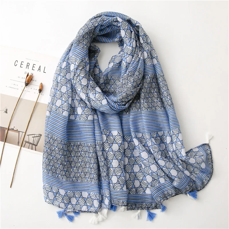 Visrover тропические пляжные шарфы геометрический полосатый большой платок черный белый шарф с принтом хиджаб женские шарфы с кисточкой оптовая продажа