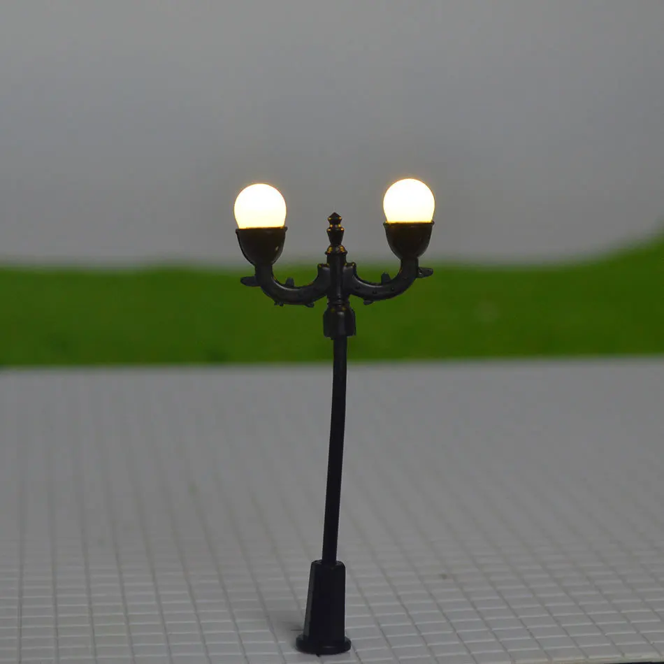 7 см Высота LED теплый/холодный белый сад Linghts 1:150 масштабная модель парк декорации фонарного столба с двойной головкой 3V Миниатюрная модель ландшафтный светильник
