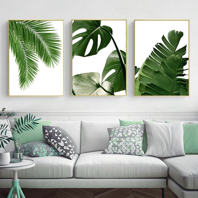 Зеленое растение, настенное искусство, тропические листья, ботаниче...