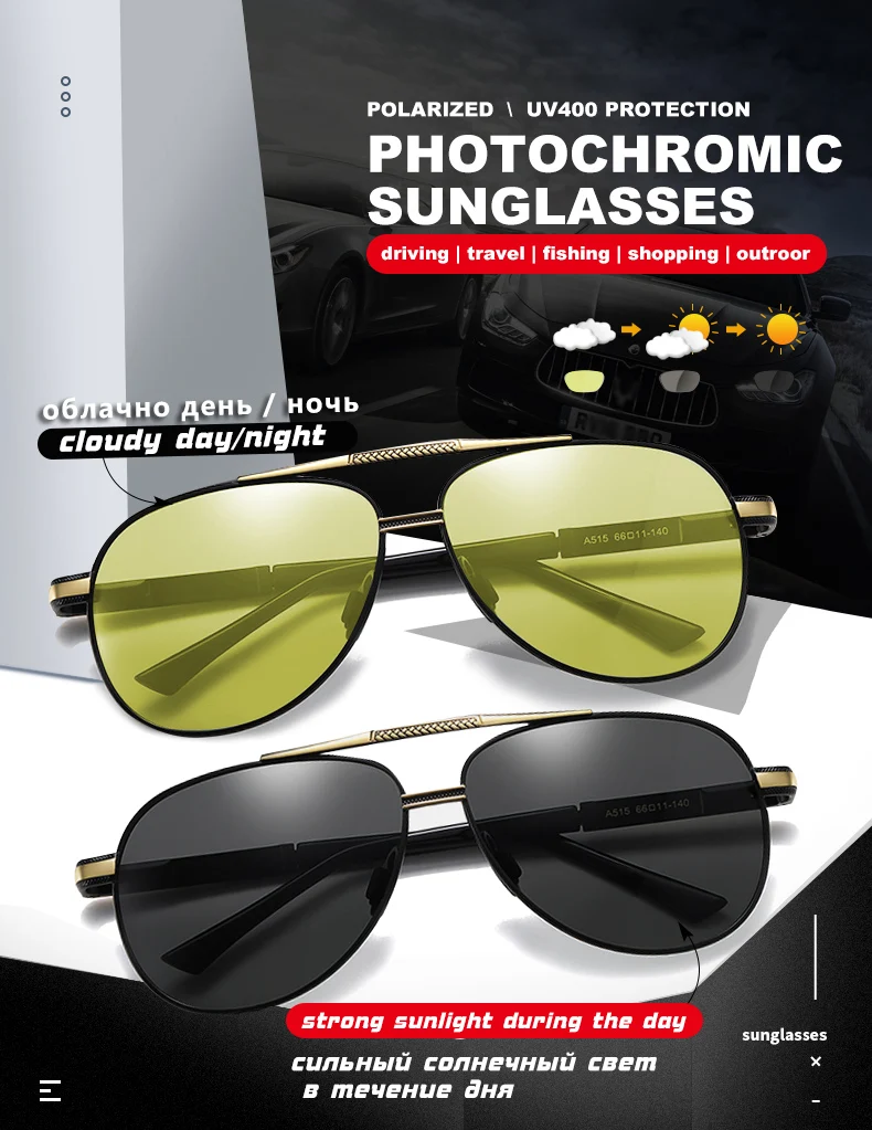 Очки солнцезащитные мужские фотохромные, брендовые поляризационные ...