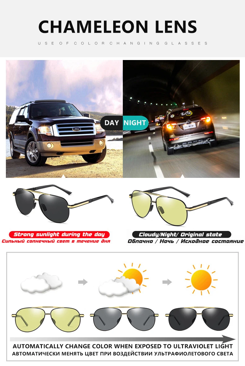 Солнцезащитные очки-Хамелеон для мужчин и женщин, авиаторы с поляри...