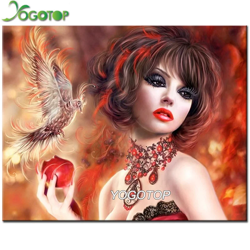 Красивая Алмазная мозаичная картина с кристаллами, сделай сам, узор, алмазная вышивка, красная женщина и птица, ведьма, домашний декор, искусство YY2522