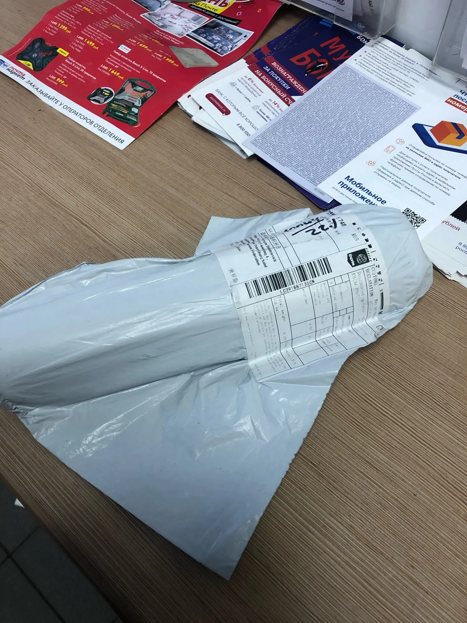 Получил посылку, в Бурятию приехал за месяц, вроде на вид нет повреждений, упакован в китайский мусорный мешок(плотный), материал хороший, мне нравится! Всем доволен))