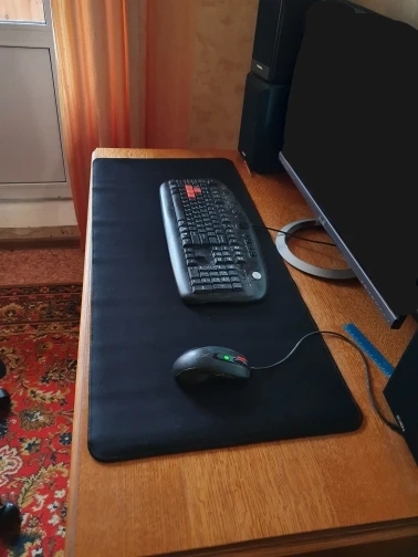 Отличный коврик, ногти не оставляют следов. Стол у меня икеевский за 2 тыщи, почти полностью покрывает его и всю рабочую область. Не берите 30 на 80, мышкой вы не сможете нормально пользоваться, она даже на 40 см на самом краю всегда будет лежать.