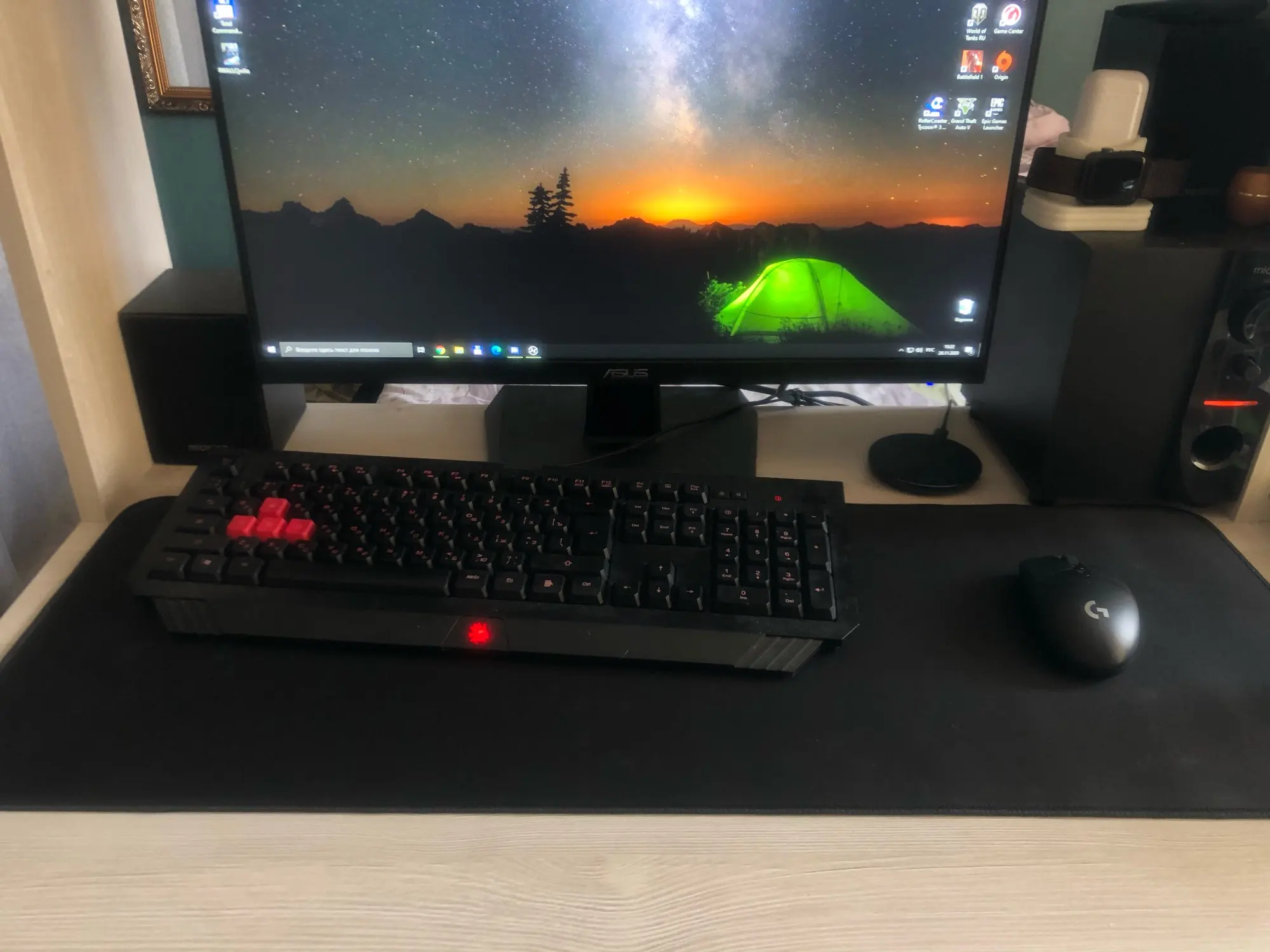 отличный коврик, клавиатура и мышь помещаются.