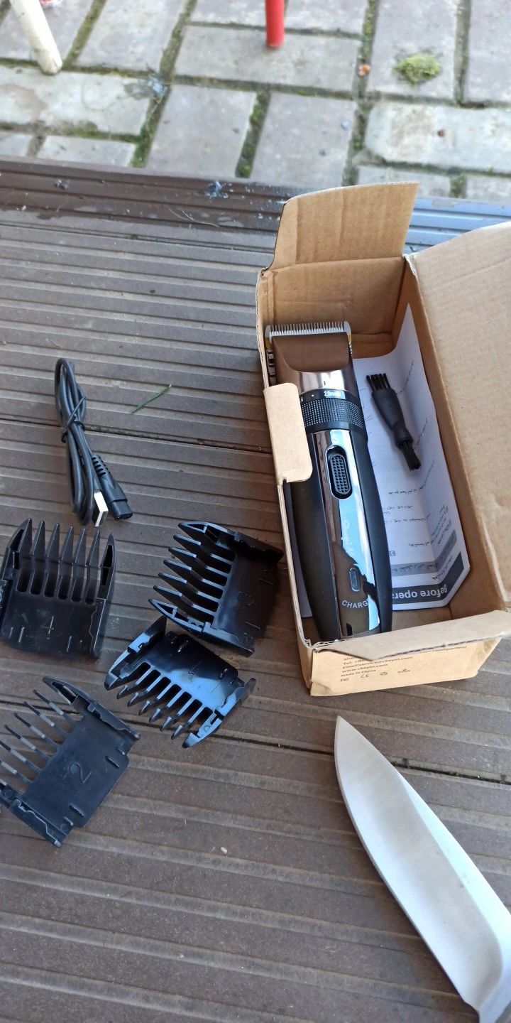 По итему: 1. В комплекте нет блока зарядника, только провод. 2. Крайне сильно греется металлический нож, невозможно прикасаться к коже без насадки. 3. Греется тело прибора. 4. Очень долгий заряд - 8 часов! 5. Штекер зарядника очень туго входит в гнездо, при этом контакт очень слабый, нужно поправлять. 6. Всё же, это не триммер, а машинка для стрижки. Не такая удобная и "маневренная". Во всем остальном всё круто, отправили быстро, привезли до дома, упаковано качественно. Вернул.