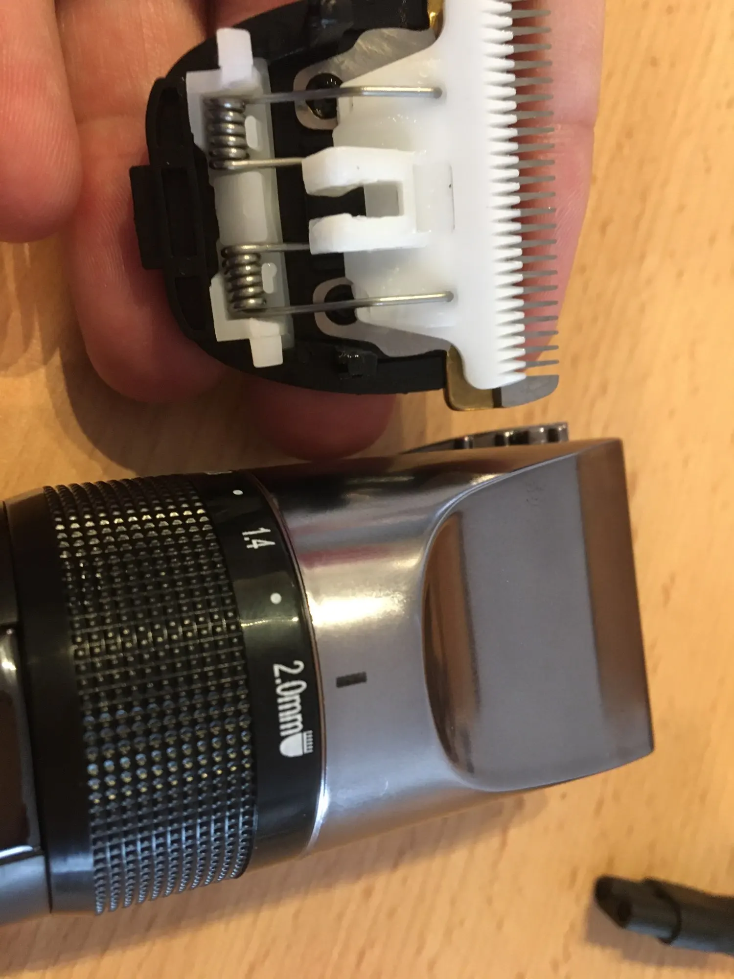 Отличная машинка! Доставка до порога (Москва) на пятый день! Все детали сделаны надежно, все крепко! Кто пишет в комментариях что верхняя режущая часть из пластика, не верьте, это настоящая керамика! Можно взять иголку и попробовать поцарапать, сами убедитесь что это не пластик!!! Стрижет отлично, после стрижки можно снять режущую часть и почистить, заодно смазать! Провод 103см. работает также от сети, моя предыдущая машинка не работала при подзарядке, а эта даже еще мощнее от сети работает! Так что если перед свиданием нужно срочно хрен с подмышками побрить а аккумулятор разряженный, не беда, врубил в розетку и вуаля!)))) В общем рад как слон, за такие деньги это огонь! Если бы еще друзья КИТАЙЦЫ в нее воткнули плату управления зарядом, цены бы ей не было!) Смело могу рекомендовать! Продавцу отдельное спасибо за оперативность!!!
