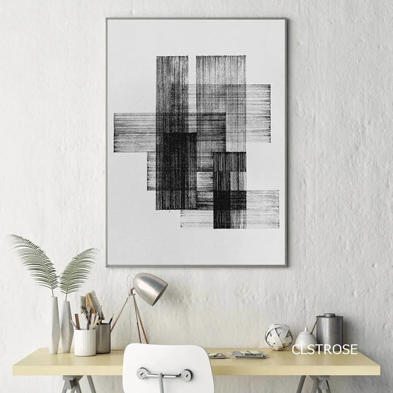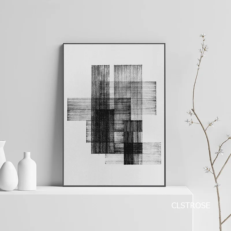 Современная черно-белая Геометрическая живопись на холсте постеры и...