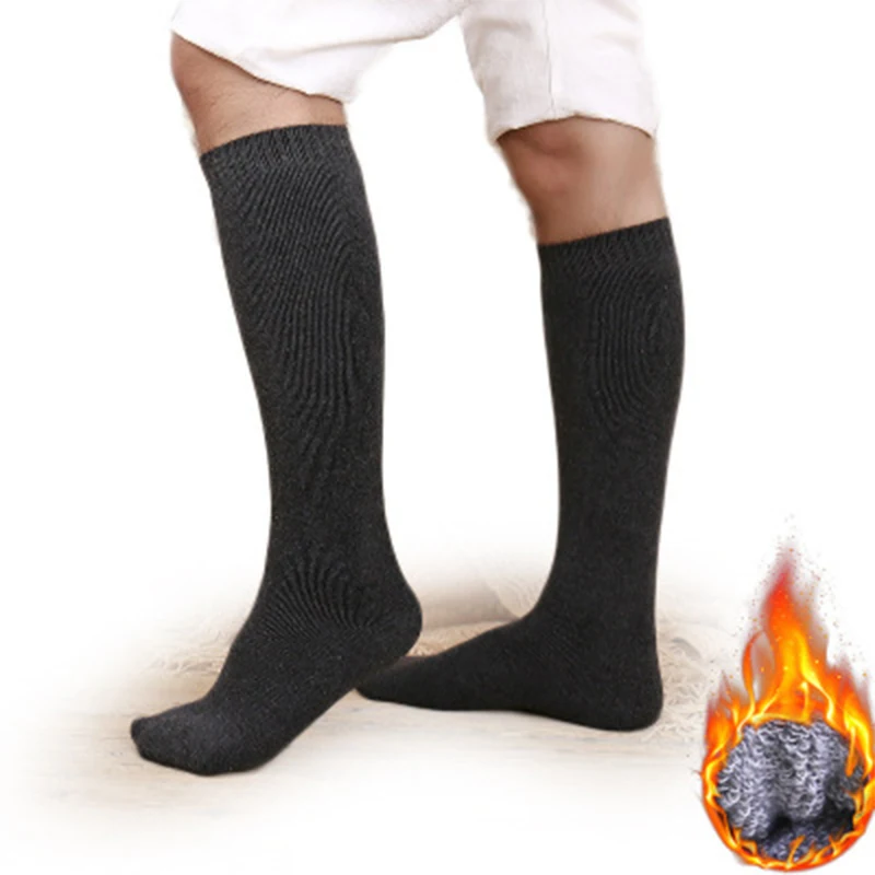 Зимние толстые мужские носки, однотонные носки до колена, теплые Утепленные длинные носки для снега, мужские хлопковые теплые Компрессионные носки