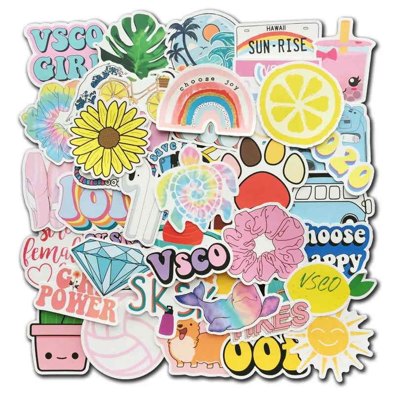 50 шт. милые эстетические наклейки Vsco для ноутбука, гидро фляжка, бутылка для воды, чехол для телефона, багажа, виниловые наклейки для детей, подростков, девушек