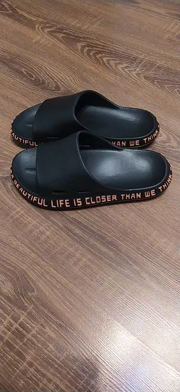 Доставка быстрая, сланцы прикольные. На свой размер 40-41, заказала на 42-43, подошло идеально. Стопа 26.5 см. Единственное это то, что сланцы хорошо подойдут на широкую стопу . У меня стопа худая и тонкая, поэтому сверху слишком много места остаётся, то есть между ногой и сланцем. В принципе, покупкой довольна. Упаковано хорошо, никаких дефектов нет, лёгкие и удобные, красивые