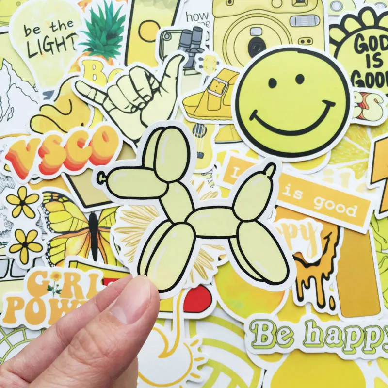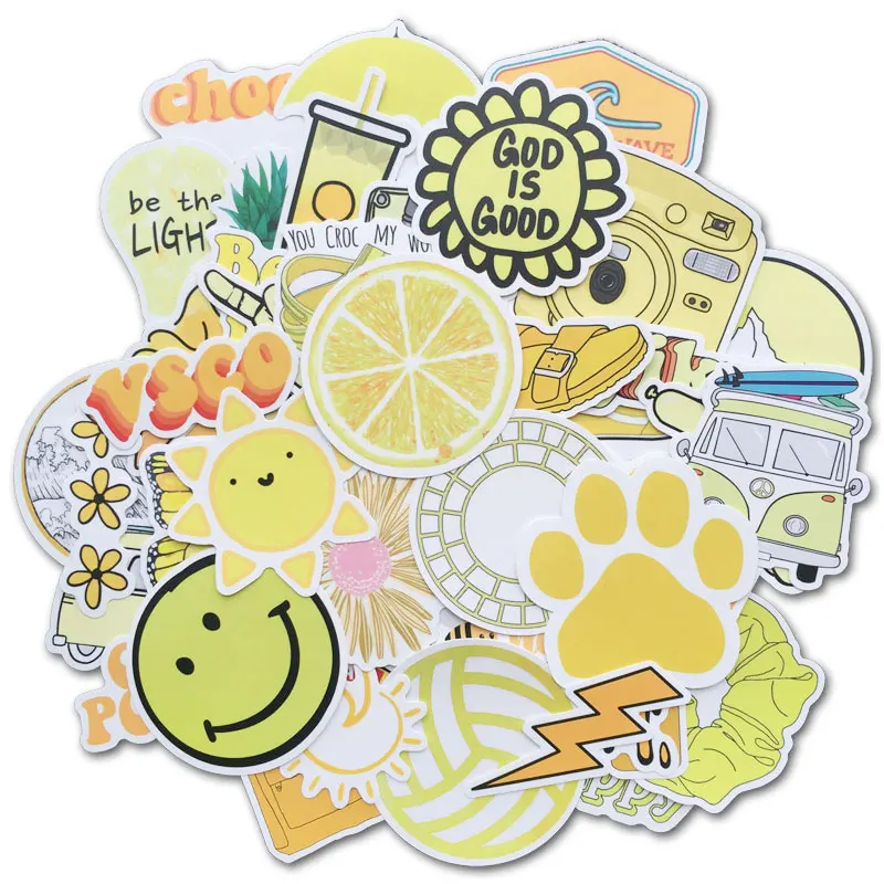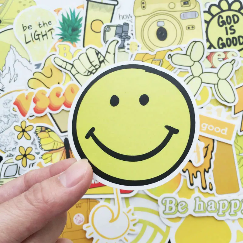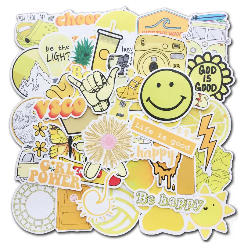 50 шт. желтые наклейки Vsco s для гидро фляги, модные эстетические наклейки для девочек-подростков, наклейки на бутылки для воды для ноутбука