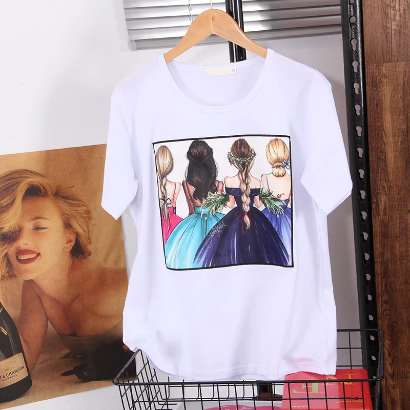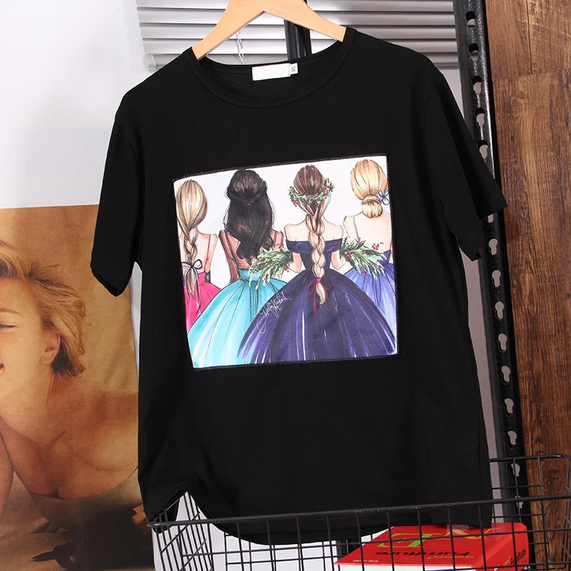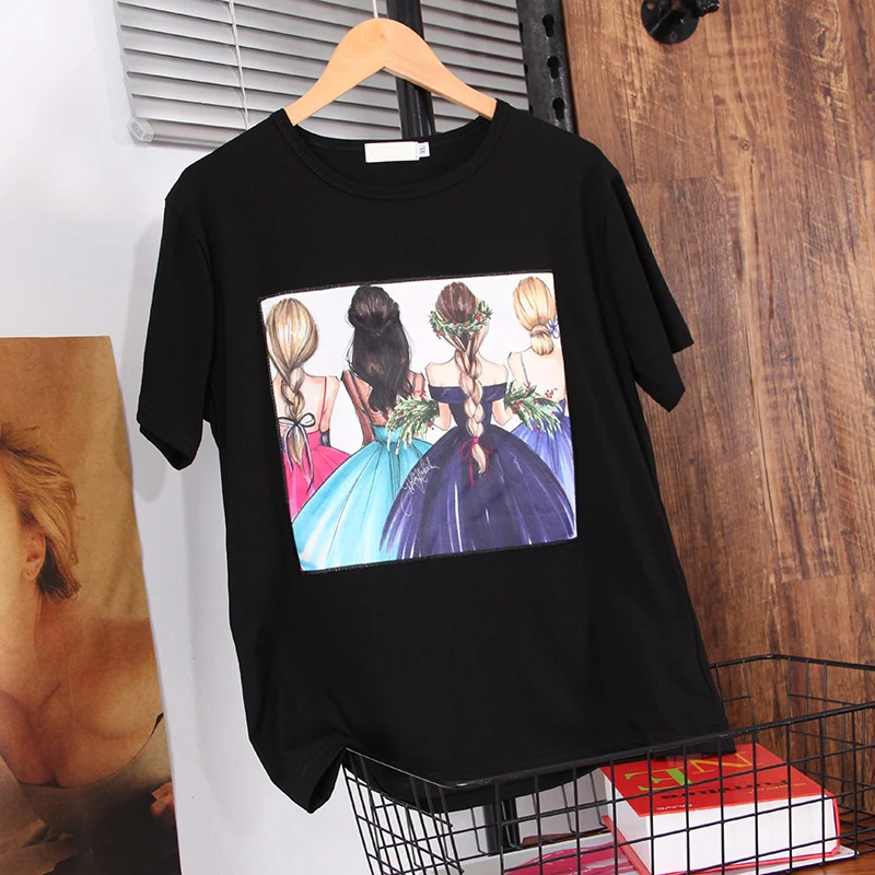 Футболка с короткими рукавами женская 2021 новая мода сладкий стиль лето свободные хлопковые аппликации с принтом топы с круглым вырезом футболки пуловеры