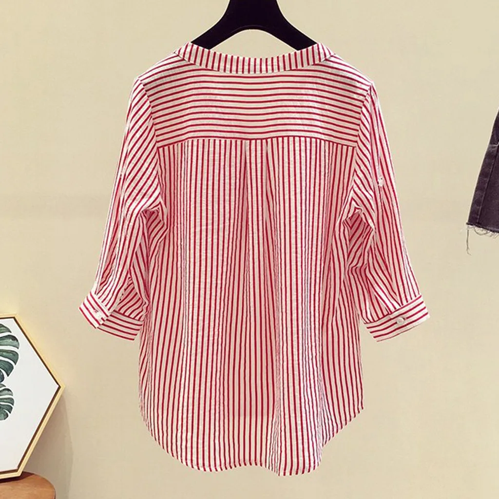 Блузка Женская в полоску, с V-образным вырезом, на пуговицах, с рукавом до локтя