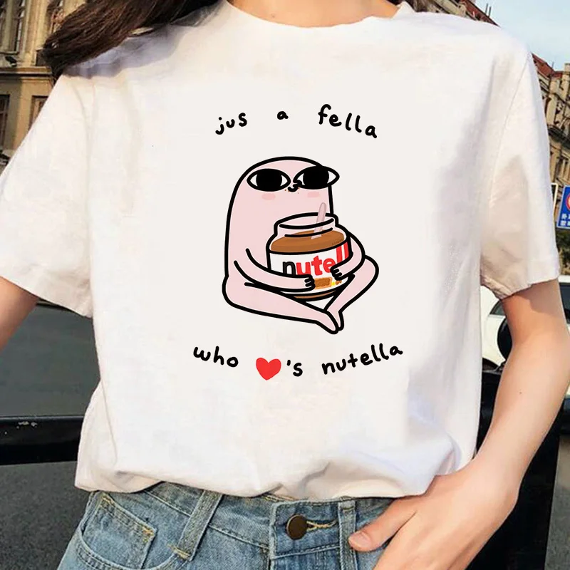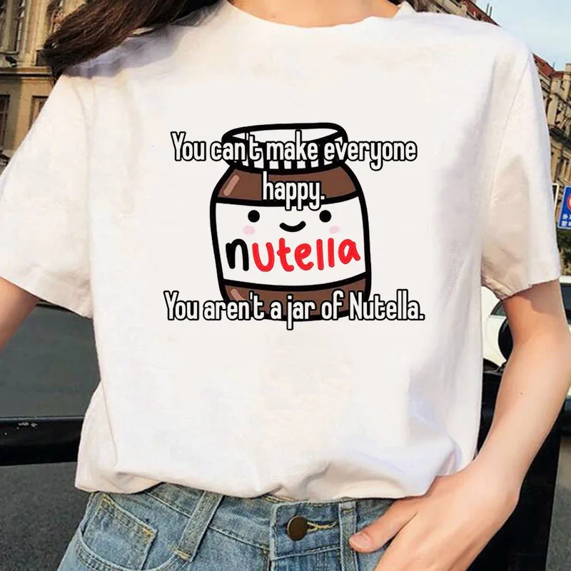 Женская футболка Ulzzang Kawaii Мультфильм Нутелла Футболка Harajuku 90-х графическая женская футболка с коротким рукавом Корейская одежда