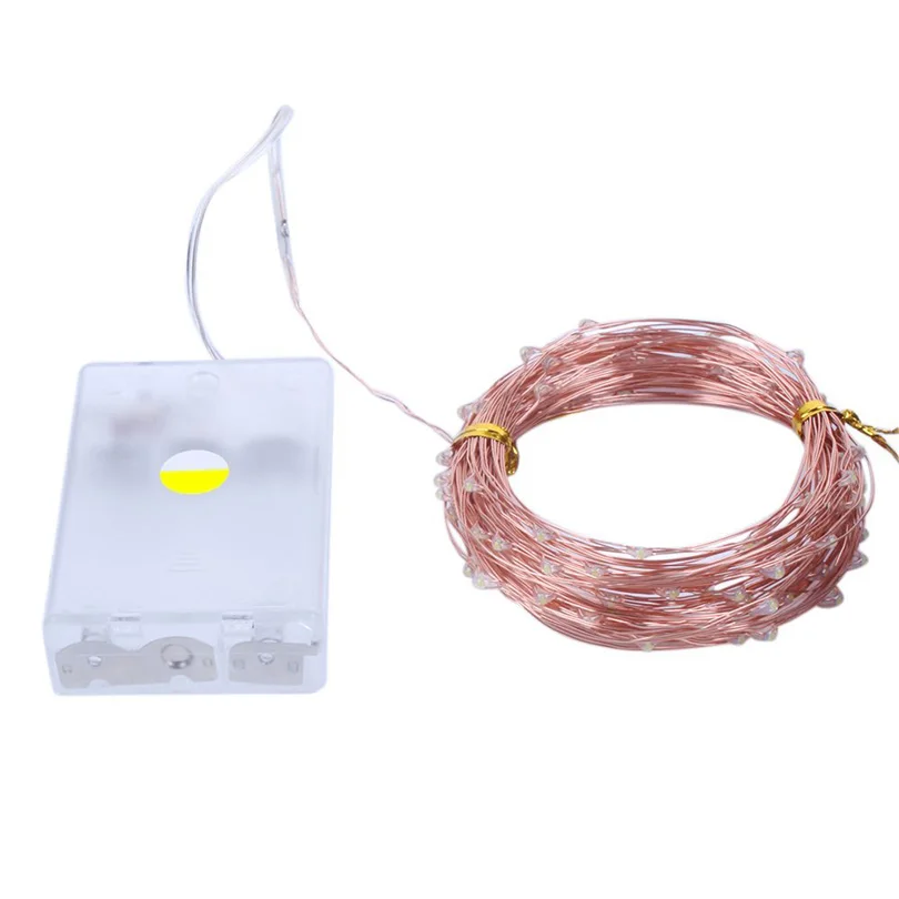 Светодиодная медная гирлянда CR2032 с питанием от батарейки, праздн...