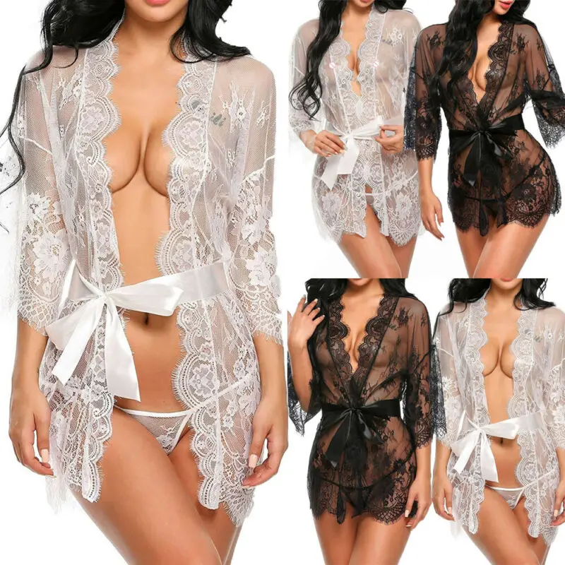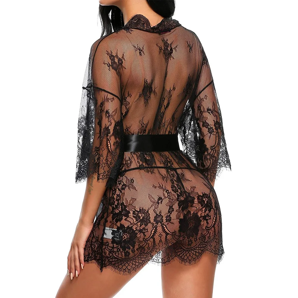 Эротическое сексуальное кружевное белье, женское кимоно, халат, сексуальное нижнее белье, размера плюс