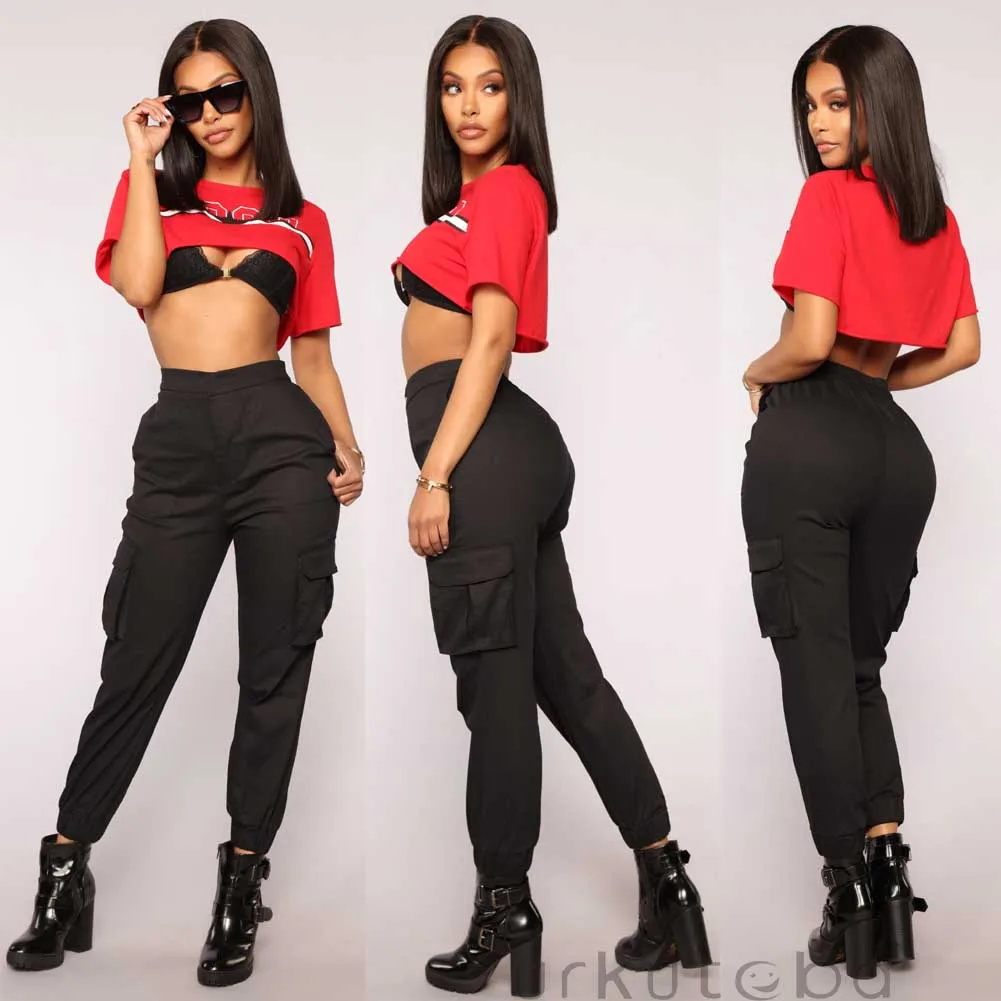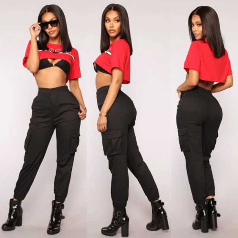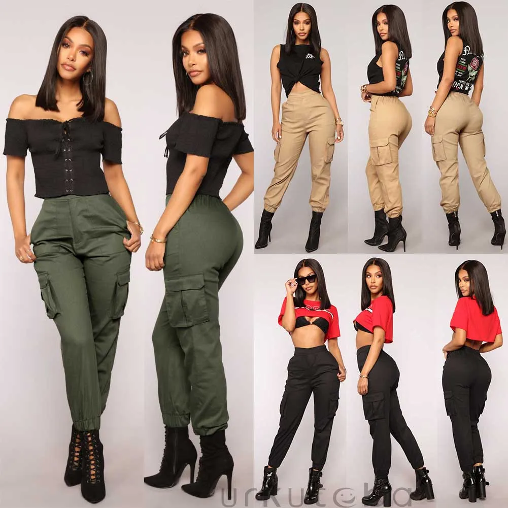 Брюки-карго женские, эластичные, однотонные, камуфляжные, в стиле милитари, на весну, 2020