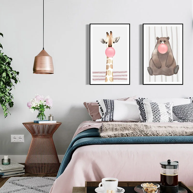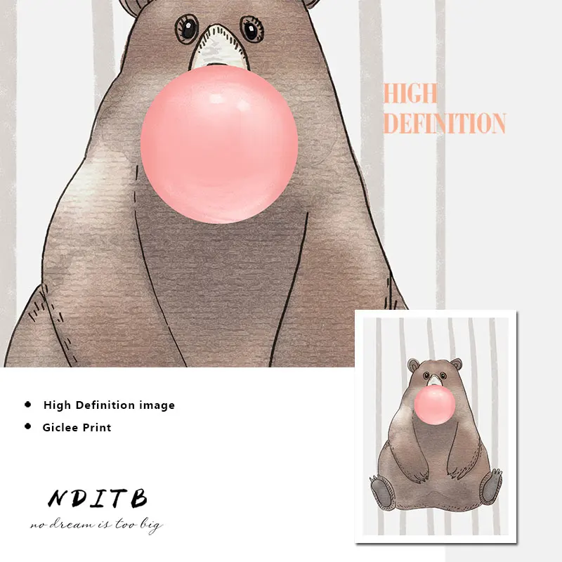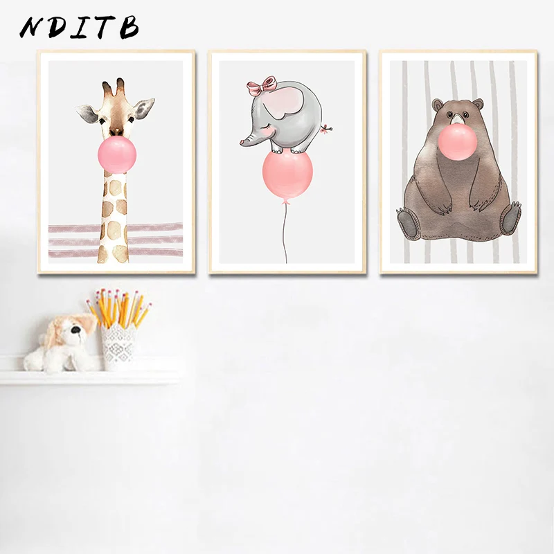 Лесной пузырь животное плакат для детской печати медведь Жираф мультфильм Картина Настенная картина скандинавский ребенок украшение для спальни
