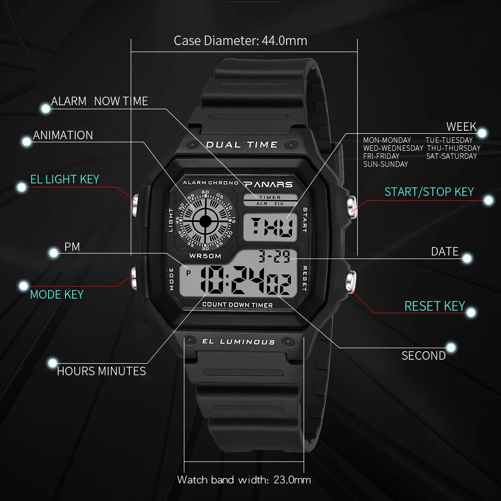 PANARS спортивные часы Для мужчин светодиодный Relogio Masculino ци...