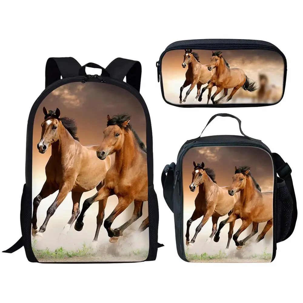 Набор детских школьных сумок с забавным принтом лошадей, рюкзак для книг для мальчиков и девочек, подарок для детей, студенческие сумки для книг