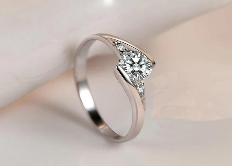 Кольцо женское обручальное из серебра 925 пробы с бриллиантом 0,75 карата