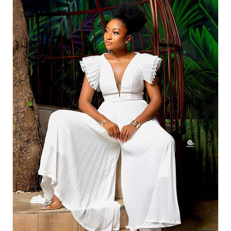 Женский шифоновый комбинезон, комбинезон в африканском стиле с V-образным вырезом и оборками, плиссированные широкие брюки, пляжная одежда в стиле бохо, 2020