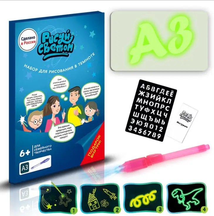 Светодиодная светящаяся доска для рисования с флуоресцентной ручкой A3 A4 A5 художественные игрушки на английском языке Обучающие забавные Волшебные рисовальные игрушки для рисования