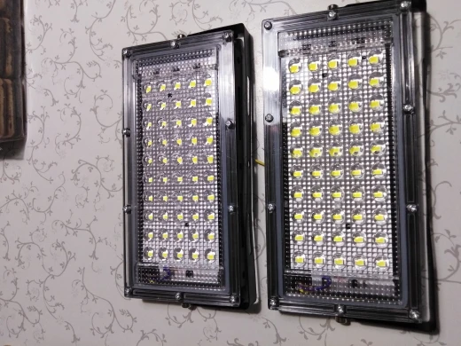 Заказ был сделан 14 февраля, 4 марта забрал в пункте выдачи магазина 5ка. Заказ пришёл в обычном мелком пакете. Внутри фонари, обернутые в пупырку. было понято чуть крепление, исправляется очень легко, так как корпус сделан из консервной банки, покрашенный из баллончика с краской. Сразу разобрал и увидел что панель приклеена к корпусу на тоненькуютполоску нерметика. Соскаблил его ножом, обезжирил и нанёс слой кпт-8 на всю площадь светодиодного модуля. Края зафиксировал клеем для стёкол, тк герметика под рукой небыло. Светят фонари оч ярко, истинно белым светом. Никакая желтизны и синива не присутствует. После 15 минут работы, корпус нагреется примерно до 70-80 градусов. Руками голыми взять невозможно. Буду колхозить радиатор от ПК. Надеюсь прослужат долго.