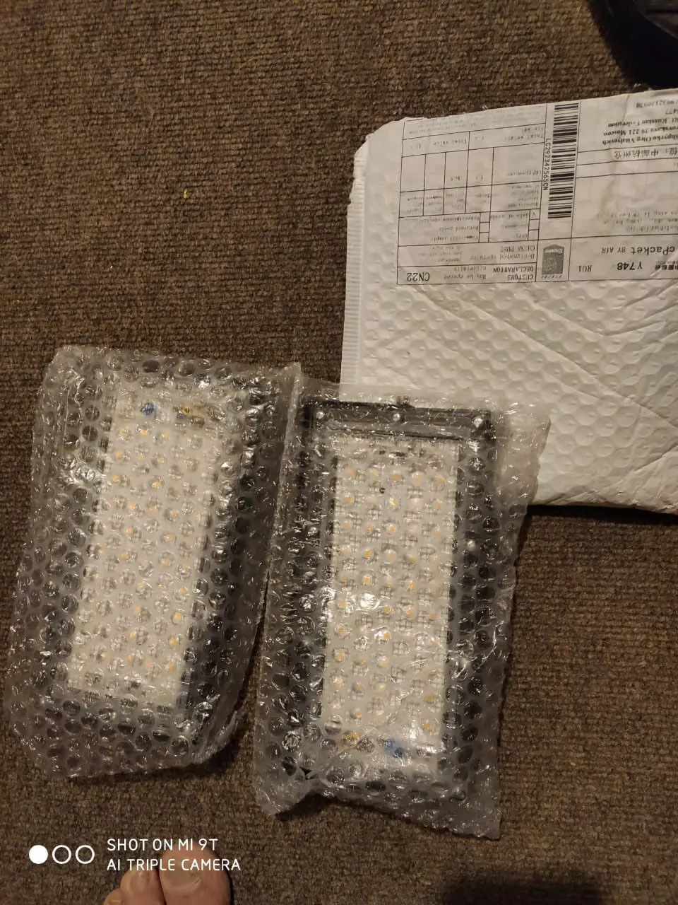 Доставка 18 дней до Смоленска, получал в магазине Пятёрочка. упаковано нормально - в пупырку каждый и оба светильника в общем толстом пакете. Корпус конечно тонкий, но в гараж пойдет на подсветку. Сделано аккуратно.