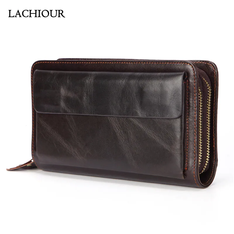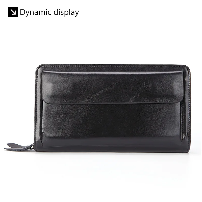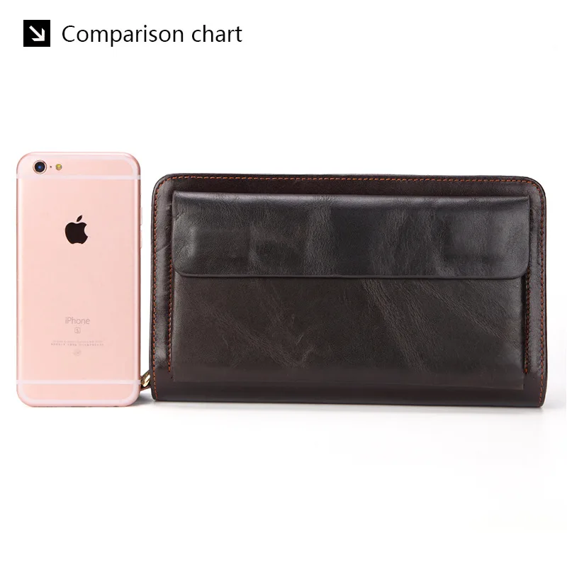 Мужской клатч из натуральной кожи, длинный деловой Кошелек для монет, черный кошелек для телефона