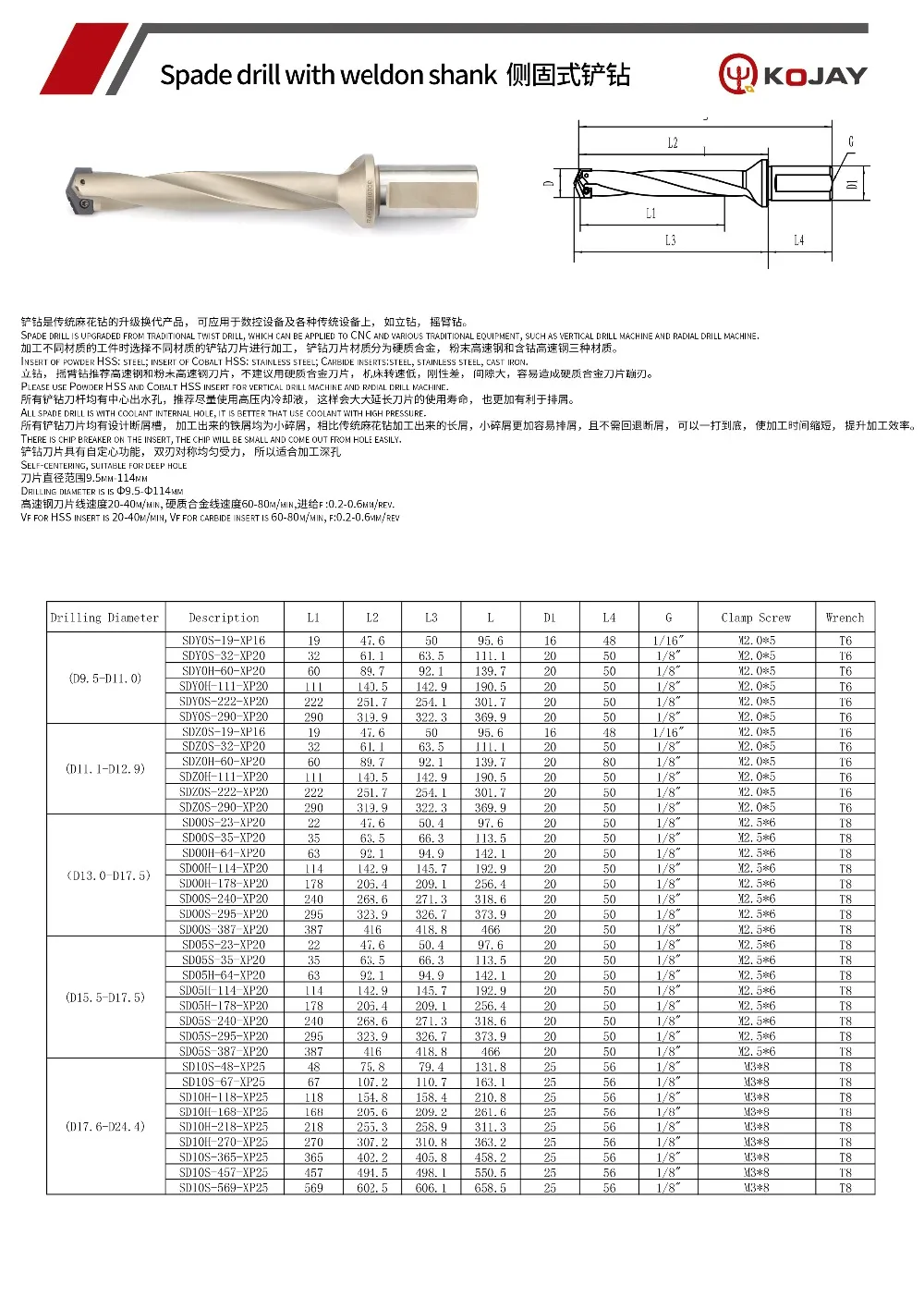 4. Все лопата сверла с внутренним отверстием охлаждающей жидкости, лучше использовать охлаждающую жидкость с высоким давлением.