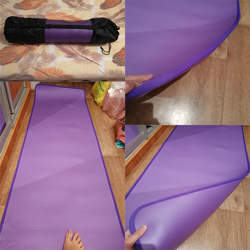 Коврик для йоги 183*61 см, нескользящий, устойчивый к разрыву, из бутадиен-нитрильного каучука, 10 мм, с повязками и сумкой для коврика для йоги