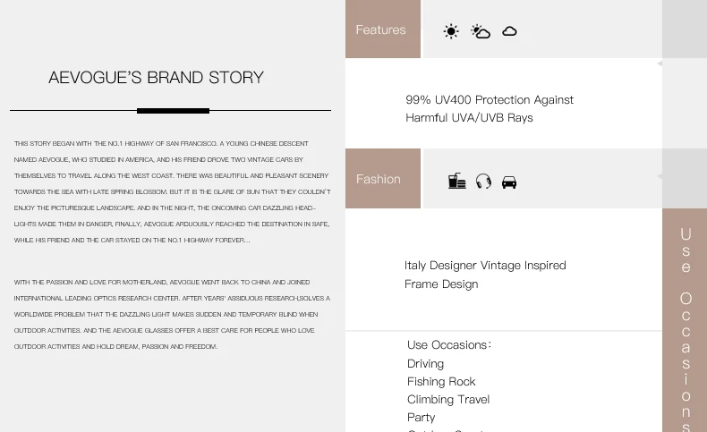 Product Function100% UV400 Protection Against Harmful UVA/UVB Rays