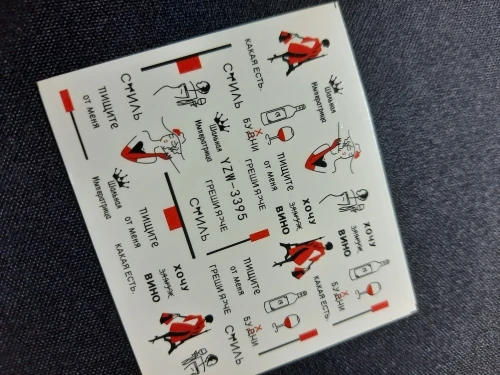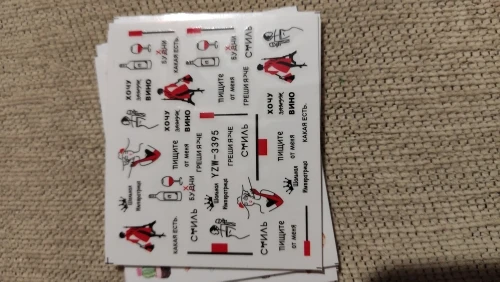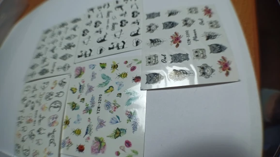 Наклейки отличные, белый рисунок не видно, надеюсь на нанесение на темный лак будет все чётко. Доставка просто супер, за 10 дней, по отслеживанию в почте России. Рекомендую к покупке, цена хорошая. После использования чуть позже добавлю отзыв как в работе.