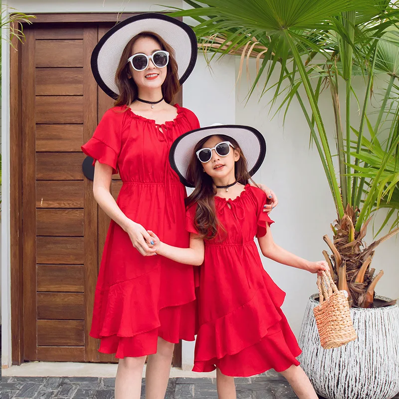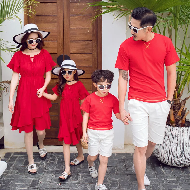 Семейная одежда, Пляжное платье, красная праздничная одежда, семейные одинаковые наряды, платья для папы, сына, матери, дочери, женское платье
