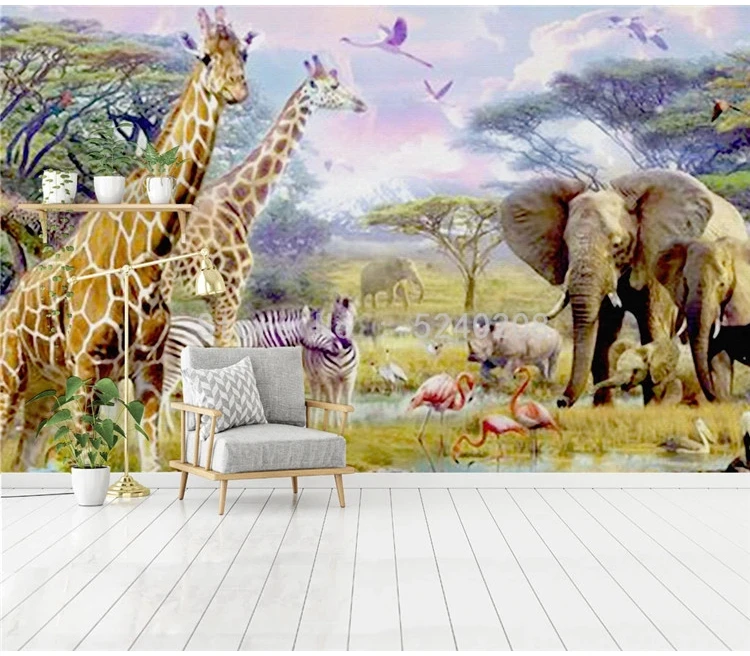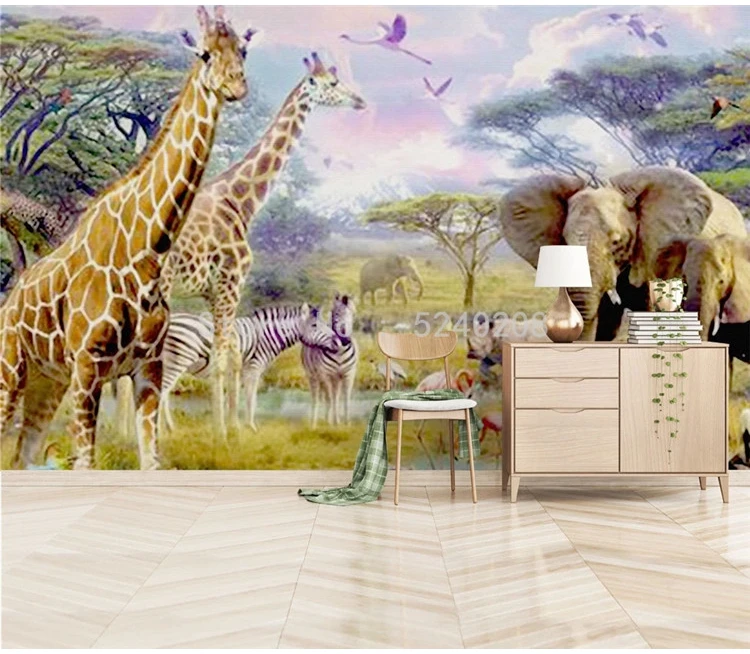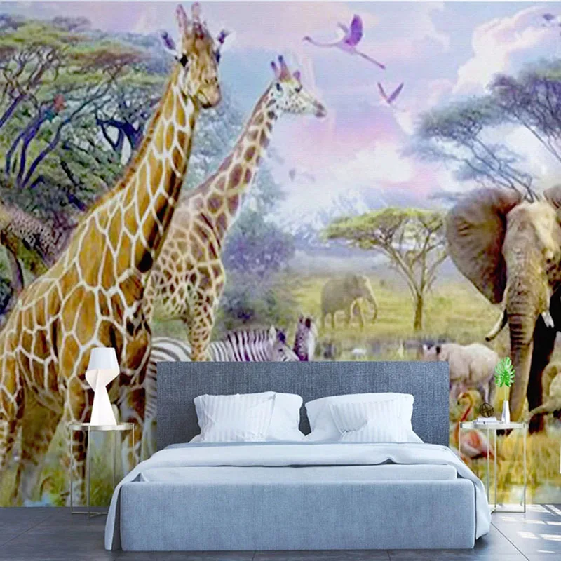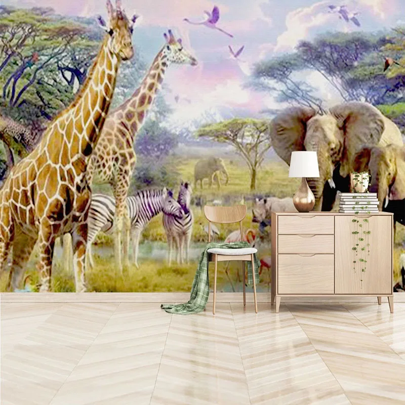 Фотообои 3D стерео зоопарк жираф слон фрески фон для детской спальни водонепроницаемые самоклеящиеся настенные наклейки