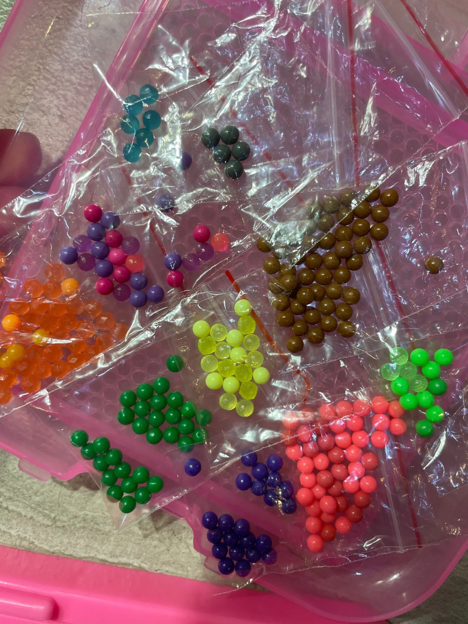 бусины разных цветов. Положили вместо 2 упаковок одну, но продавец вернул деньги.
