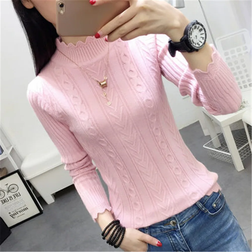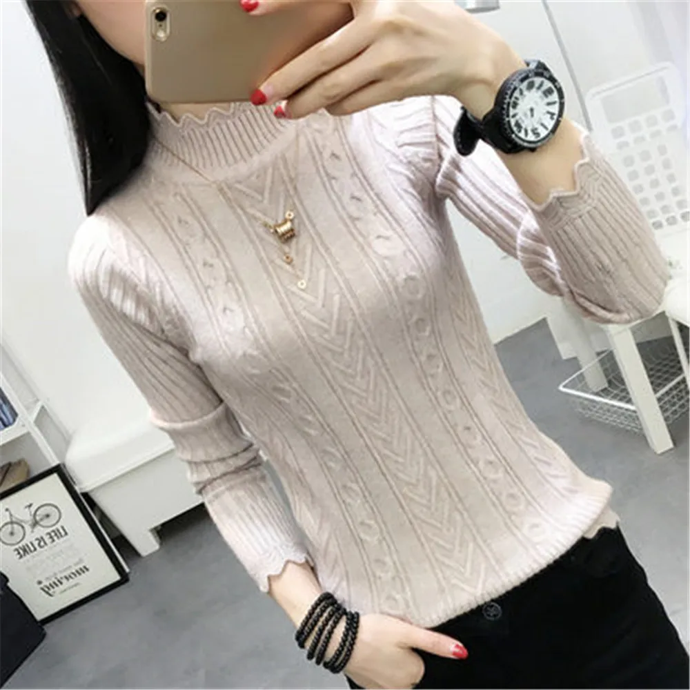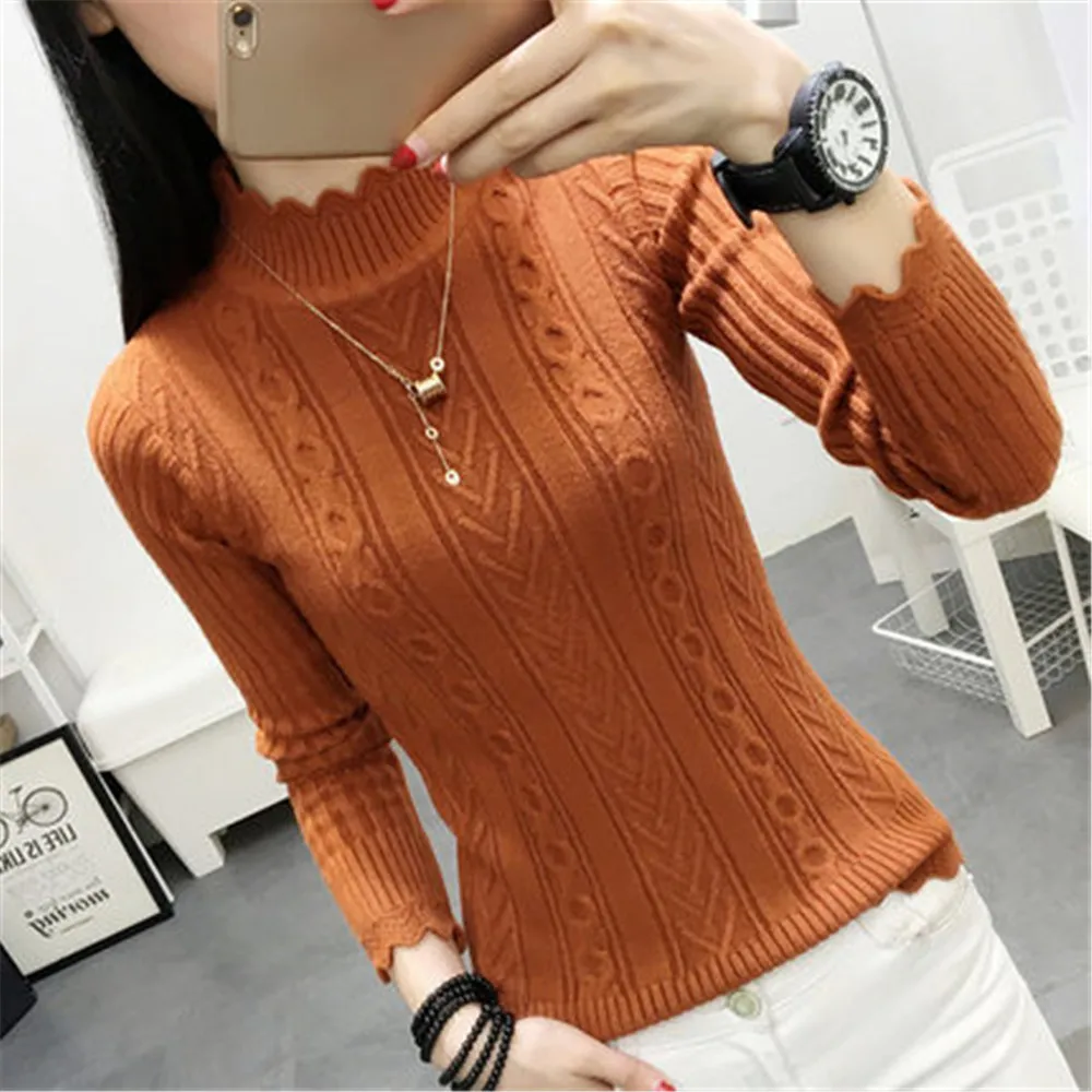 2020 корейский осенне-зимний свитер, Женская водолазка, облегающая блузка с длинным рукавом, короткий тонкий вязаный плотный свитер