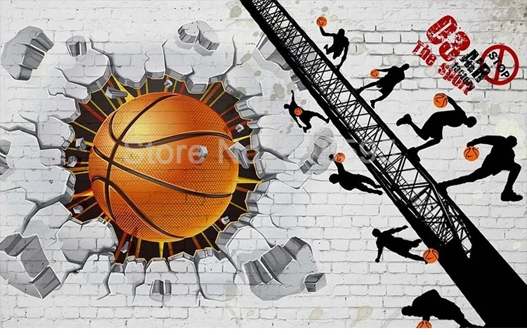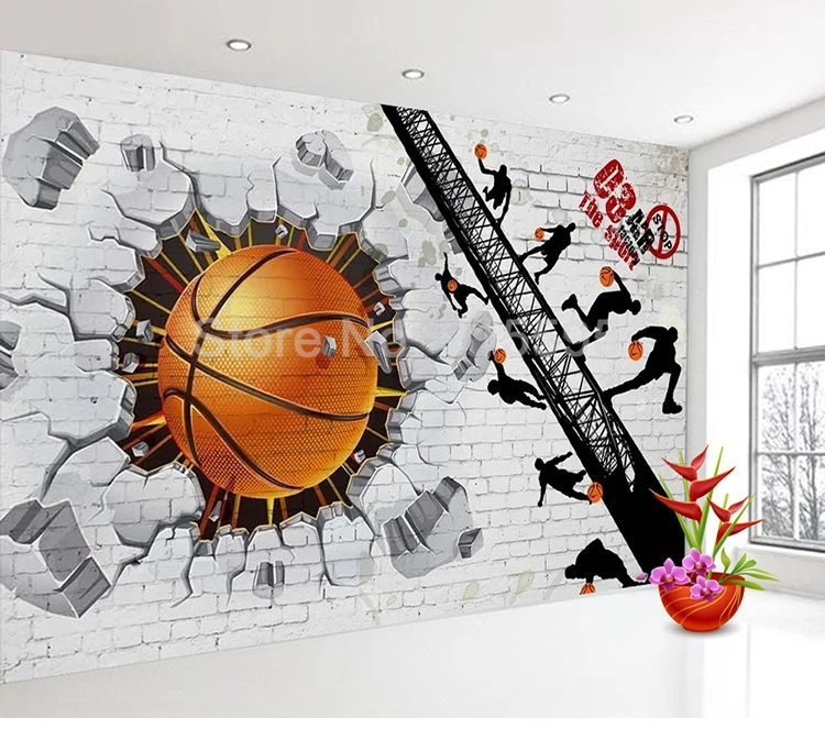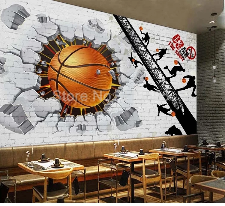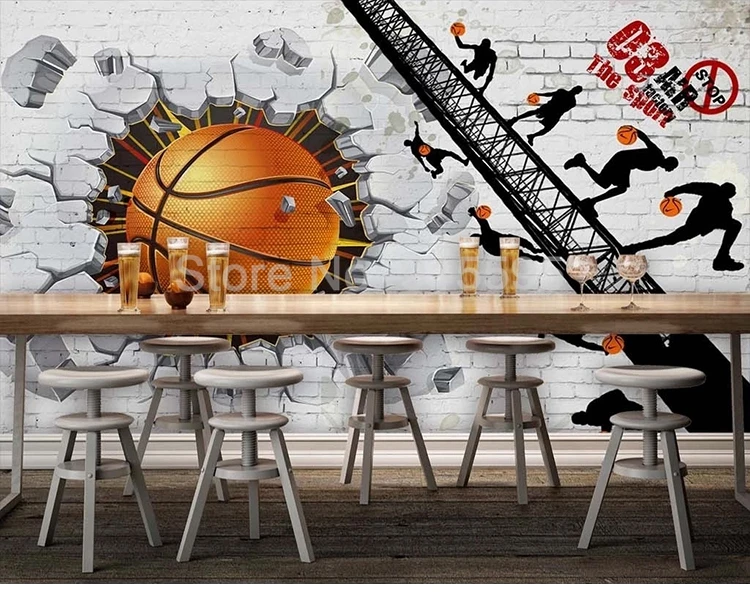 3D Настенные обои на заказ, белая кирпичная стена, баскетбольный плакат, ретро-бар, кафе, ресторан, фон для фотографий, настенная живопись, Современный 3D