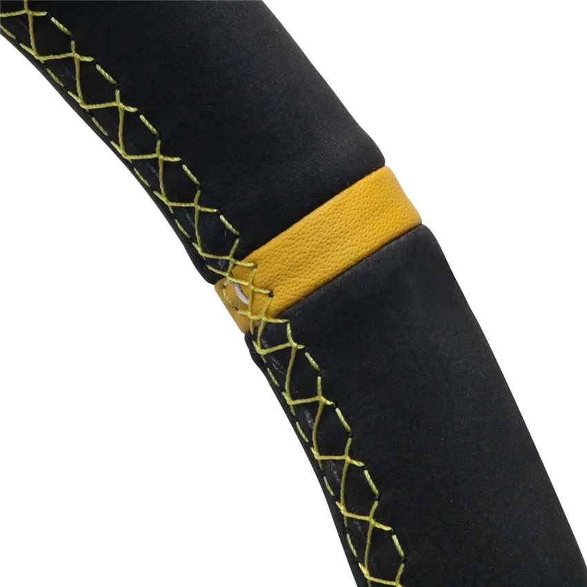 Желтый Маркер черная замша ручной шить крышка рулевого колеса для B...