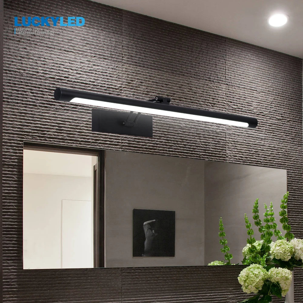 Современная светодиодный ная лампа LUCKY для ванной комнаты, зеркальный винтажный настенный светильник черного и серебристого цвета, освещение для стены, 12 Вт, 55 см