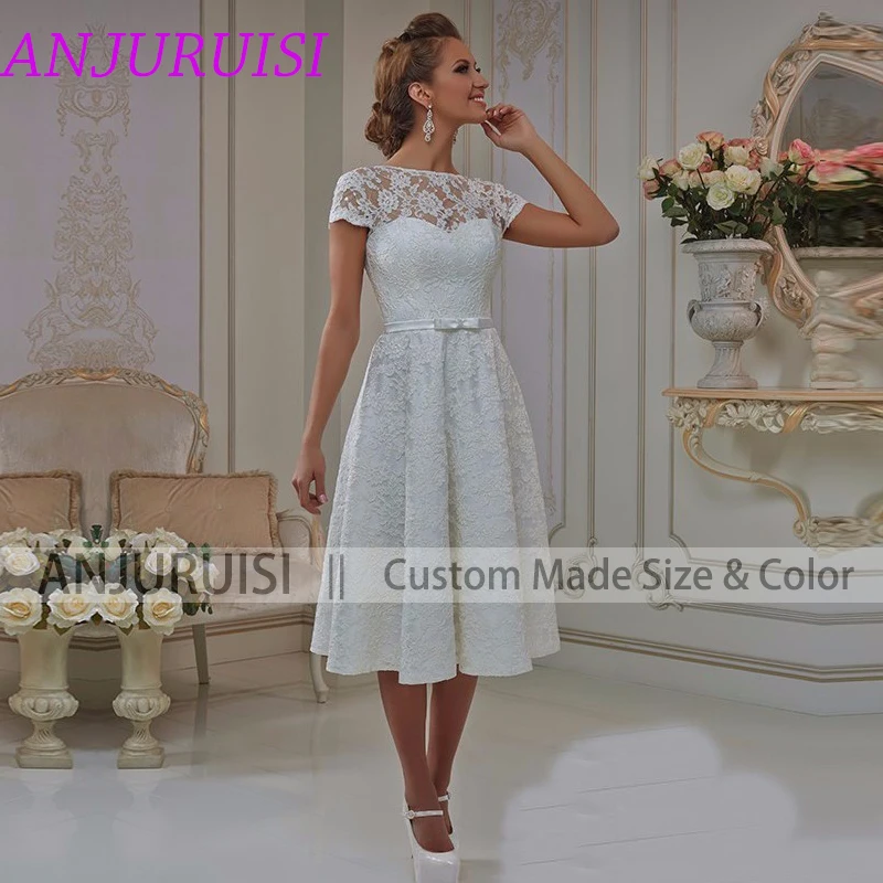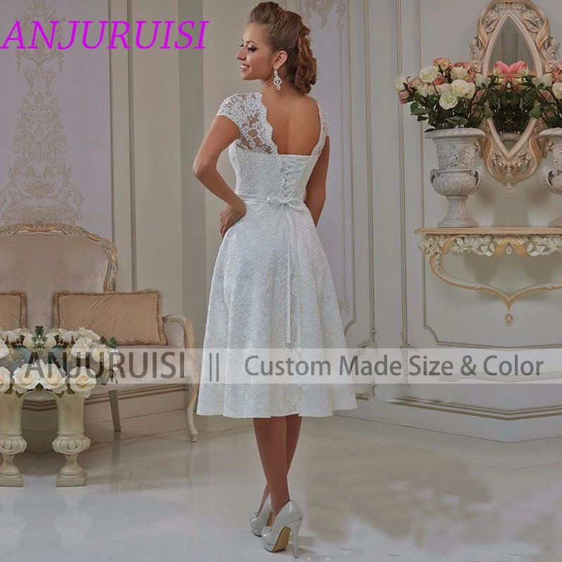 Винтажное кружевное короткое свадебное платье ANJURUISI, 2020, свадебное платье с завязкой на спине до колен, богемные свадебные платья