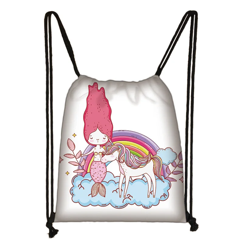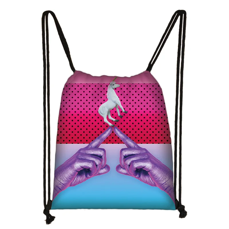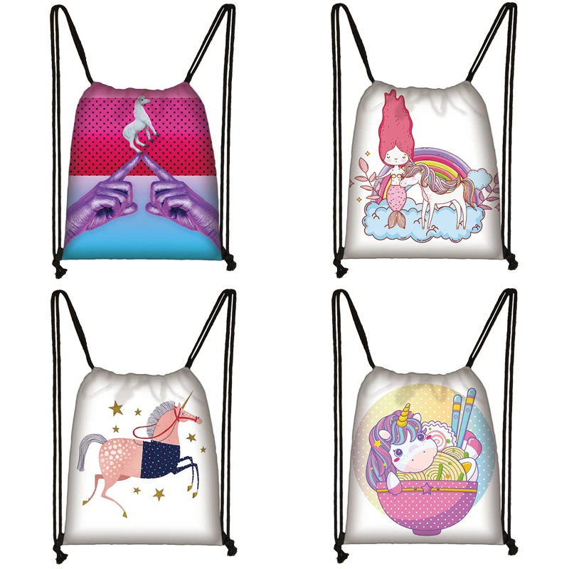 Женская сумка на шнурке с принтом единорога, школьная сумка, рюкзак коричневого цвета для девочек и мальчиков, модные женские сумки для хранения To5563